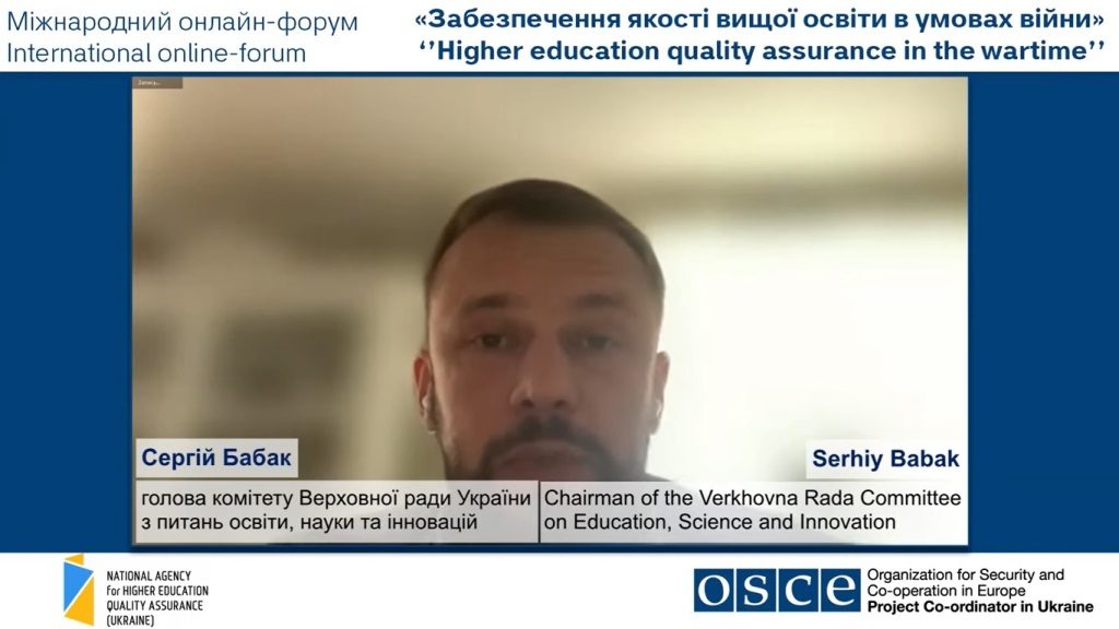 «Незважаючи на ці складні умови та обставини дуже важливо зосереджуватися на освіті. Тому що освіта це запорука світлого майбутнього для України та її молодого покоління, перш за все, а також освіта відіграє важливу роль у сприянні верховенства права та розбудові культури для майбутніх поколінь», – зазначив Сергій Бабак, голова комітету Верховної Ради України з питань освіти, науки та інновацій.